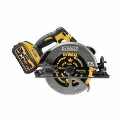 The DeWalt DCS578 54V Circular Saw features an improved brushless motor for extended durability, efficiency and power delivering true corded performance. Upgraded electronic module and components allow for additional motor power. Variable adjustment of the bevel angle to 57ยฐ and scale for precise cutting depth setting to 67mm.