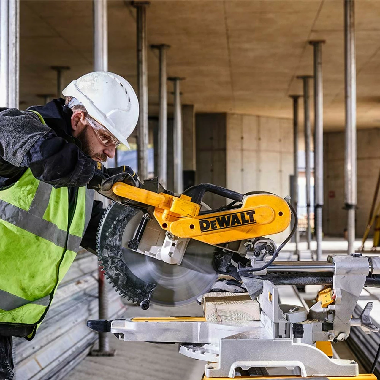 The DWS780 mitre saw is the evolution of the highly popular DW718XPS and features increased capacity, a brighter XPS system, increased portability and better dust extraction. With massive cutting capability this DeWalt Mitre Saw performs in both small profiles and large construction timbers up to 110 x 303 mm. The XPS Shadow line cut indicator provides accurate and fast alignment of the blade while lighting the job in hand for faster workrate no adjustment required. Comes supplied with a DE7023 Universal Mitre Saw Stand.