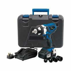 The Draper 82983 is a 20V Cordless Impact Wrench with variable speed, aluminium gearbox, and thermal overload protection. The impact wrench comes supplied with 2x3Ah Batteries, a Fast Charger, and 4x Impact Sockets. This item is not part of the 20V Power Interchange Range.