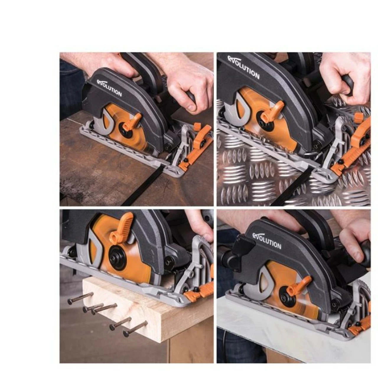 The Evolution R185CCS Circular Saw is ideal for both trade and DIY users thanks to its powerful motor and optimized gearbox. When combined with the Evolution R185TCT-20CS blade supplied it can cut through a variety of materials such as mild steel, aluminium, wood (even with embedded nails), plastic, copper, PVC and more.