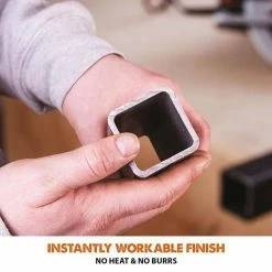 When cutting mild steel the saw produces a square, ready-to-weld cut with no heat, no burrs and virtually no sparks, far superior to abrasive cutting methods. The saw features an adjustable cutting depth and 0-45 ? bevel capabilities for versatile cutting in any material. It also features channelled air flow and a vacuum extraction port, that helps to keep the cutting line visible. The electric blade brake and blade guard, (that closes in 0.4 seconds) improves user safety and reduces exposure to a spinning saw blade. The integrated LED light improves visibility of the work piece.