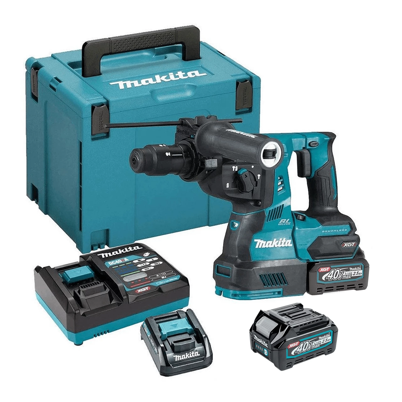 Makita HR004GD201 40V XGT SDS+ 28mm Brushless Rotary Hammer with 2x 2.5Ah Batteries