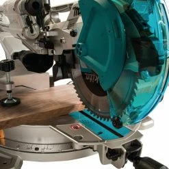 This mitre saw is powered by a 15 AMP direct drive motor with soft start, furthermore, a direct drive enables smoother start-ups and consistent, constant power with no belts to slip or replace. The electric brake provides added convenience. In addition, the electronic speed control maintains constant speed under load for smoother, higher-quality cutting. The user also benefits from a see-through blade guard system for greater visibility of the blade and line-of-cut. The built-in laser indicates the line-of-cut whether the blade is turning or not, and offers micro-adjustments for precise βleft-of-bladeβ or βright-of-bladeβ cutting. For improved dust extraction it has an improved dust collection capability for use with a bag (included) or extractor (sold separately). It also has a large-sized aluminium base that improves the stability of cutting stock for more efficient cutting.