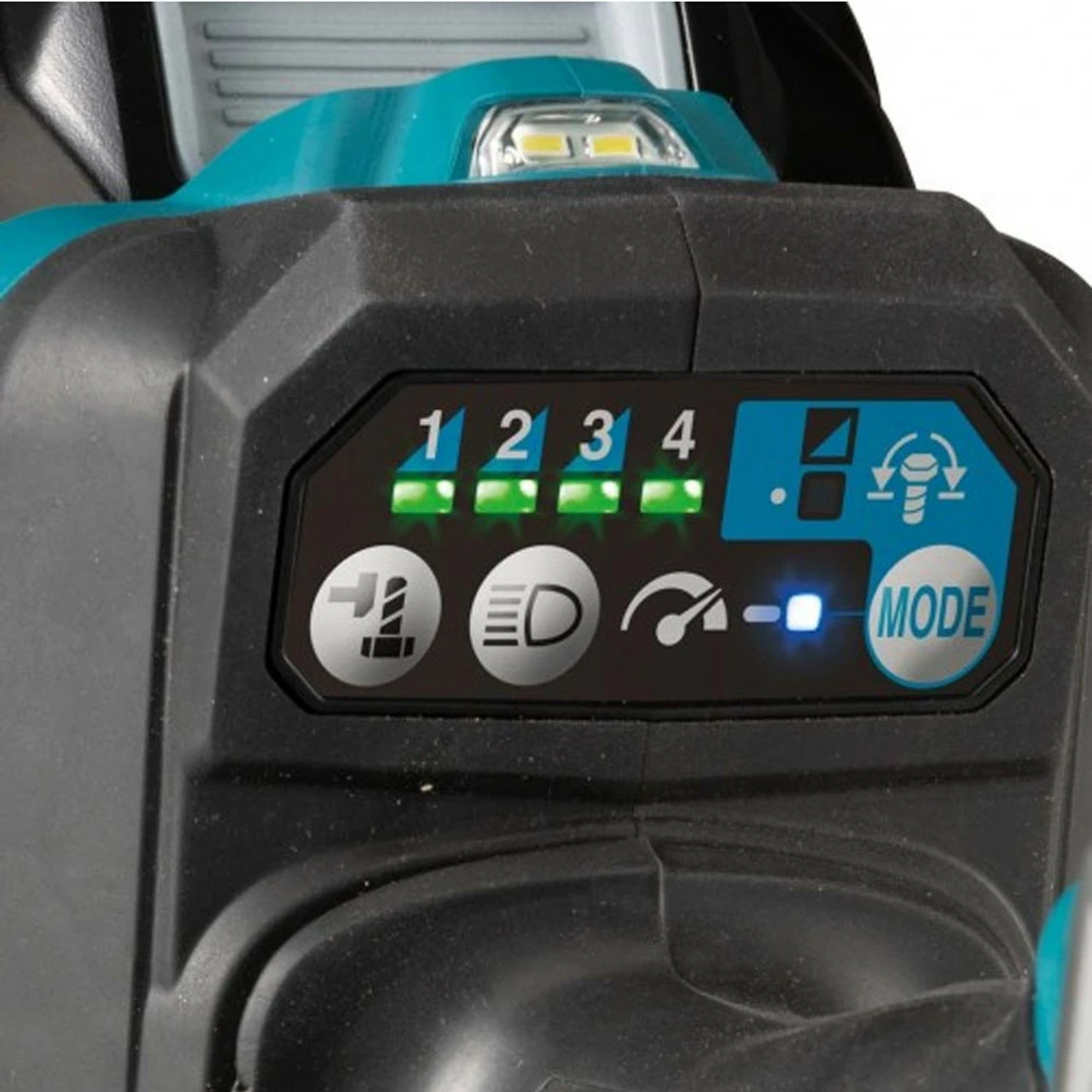 The Makita TW001 40v Max XGT Brushless Impact Wrench is a fairly compact, lightweight 3/4″ Square Impact Wrench that is packed with plenty punch! Boasting an extra high max tightening torque of 1,800Nm. With an electric brake and variable speed trigger, it offers a high level of controlΒ as well as an auto-stop system available in both forward/reverse rotation modes. An LED job light means great visibility even in low light conditions, and the 4 stage impact power selections gives you the versatility to use this tool for a range of different applications. The variable speed mode can be changed to full speed mode simply by pushing a button. Because in full speed mode the trigger travel is shorter, the full speed is reached faster.