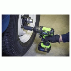 TheΒ Sealey CP400LI 18V 1/2″Sq Drive Cordless Impact Wrench in Green has a variable speed trigger and also has a double injected body with rubber grips for added comfort and control whilst working. This impact wrench as has a cast aluminium gearbox and produces up to 400Nm of torque. The impact wrench is supplied in a storage case with a 3Ah Lithium-ion battery and 80 minute mains charger.